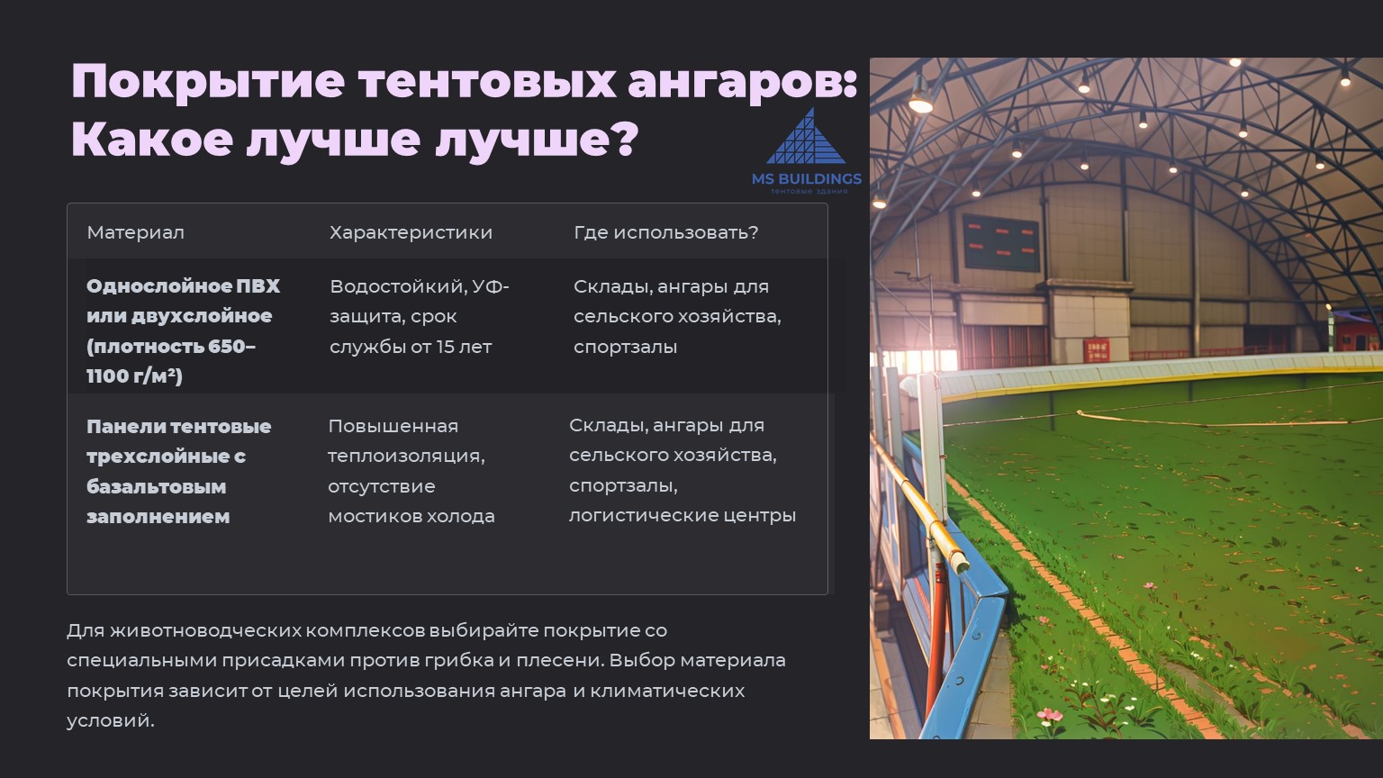 Важно: Для животноводческих комплексов выбирайте покрытие со специальными присадками против грибка и плесени.
