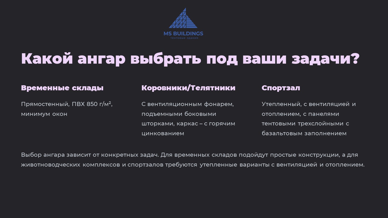5. Какой ангар выбрать под ваши задачи?