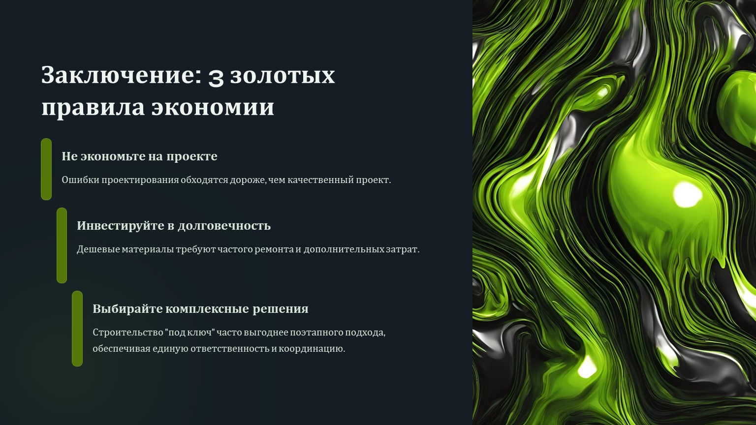 - Выбирайте комплексные решения - "под ключ" часто выгоднее поэтапного строительства
