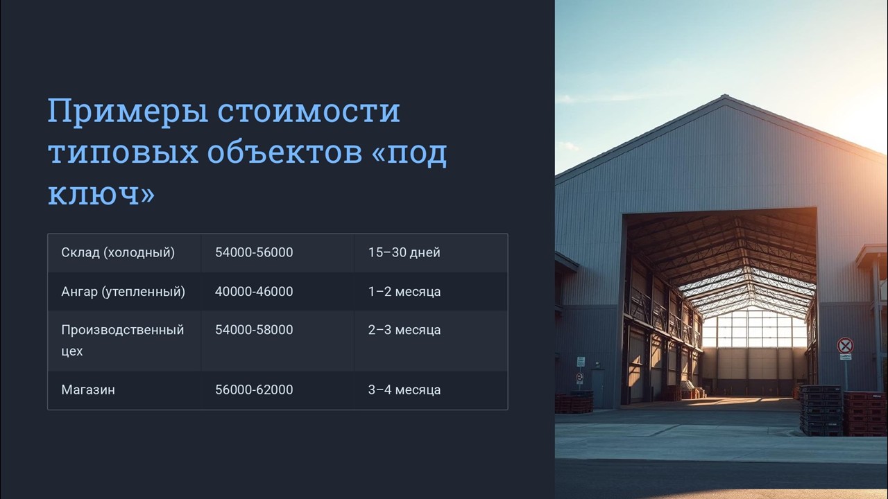 2. Примеры стоимости типовых объектов (цены приведены строительства «под ключ»