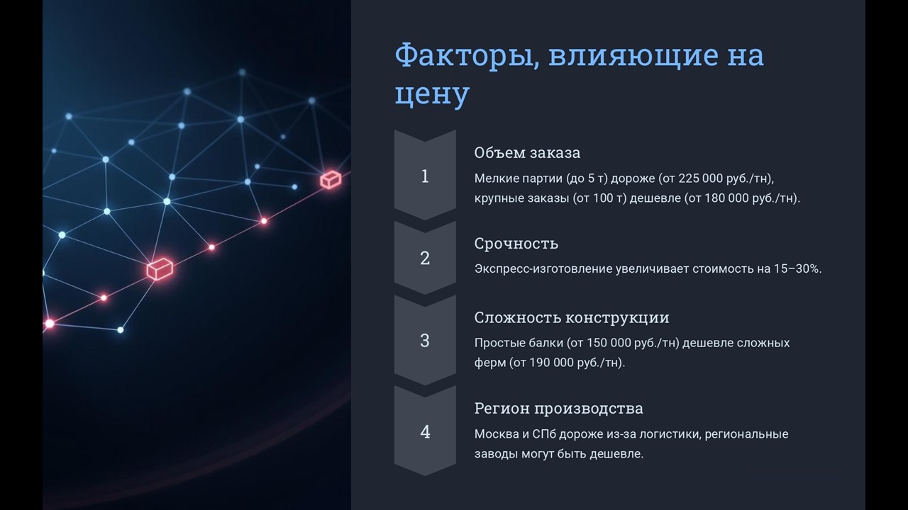 - Крупные заказы (от 100 т) – дешевле (от 180 000 руб./тн)