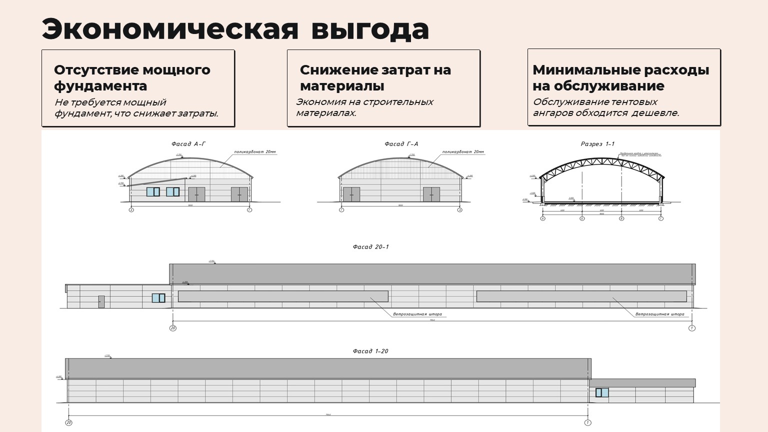 Тентовые ангары значительно дешевле традиционных кирпичных или бетонных коровников. Экономия достигается за счет: