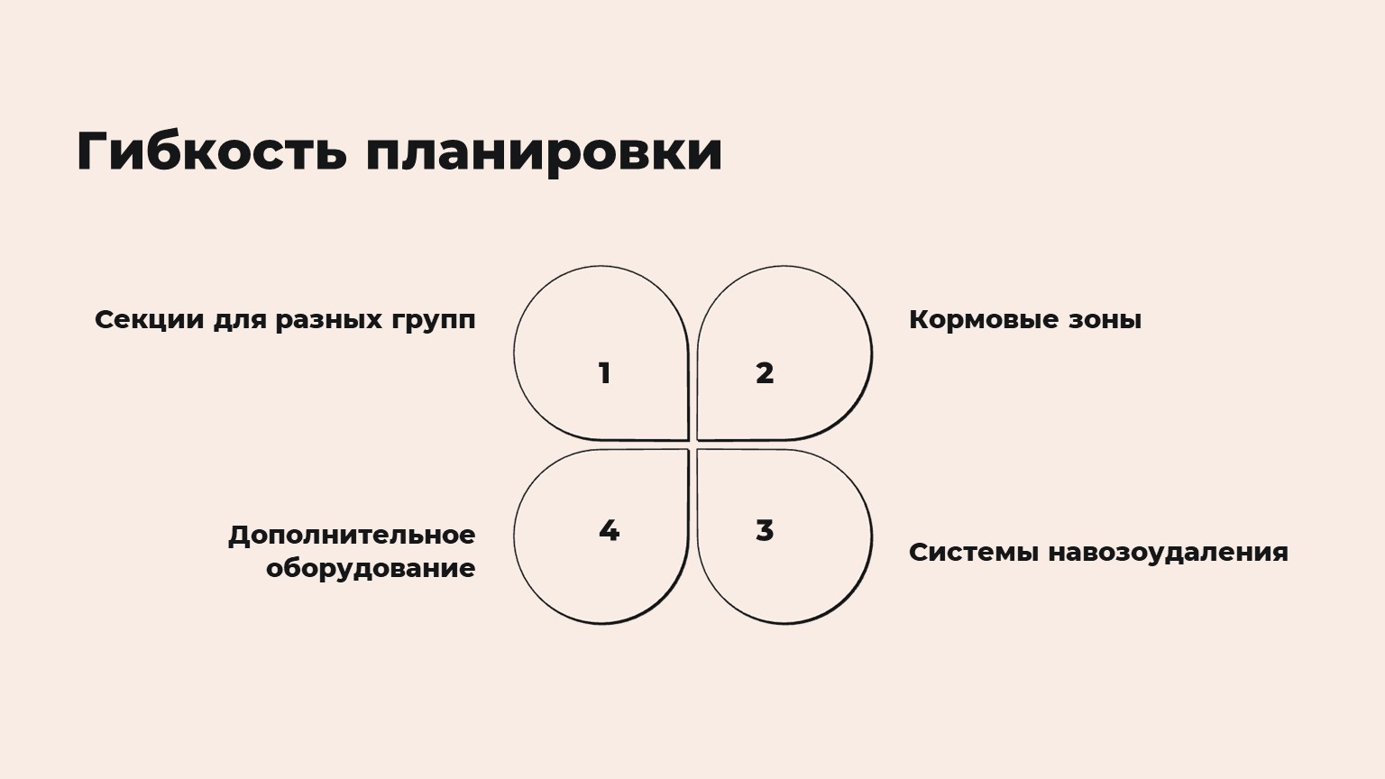 · Разделение на секции для разных групп животных (телята, дойные коровы, быки).