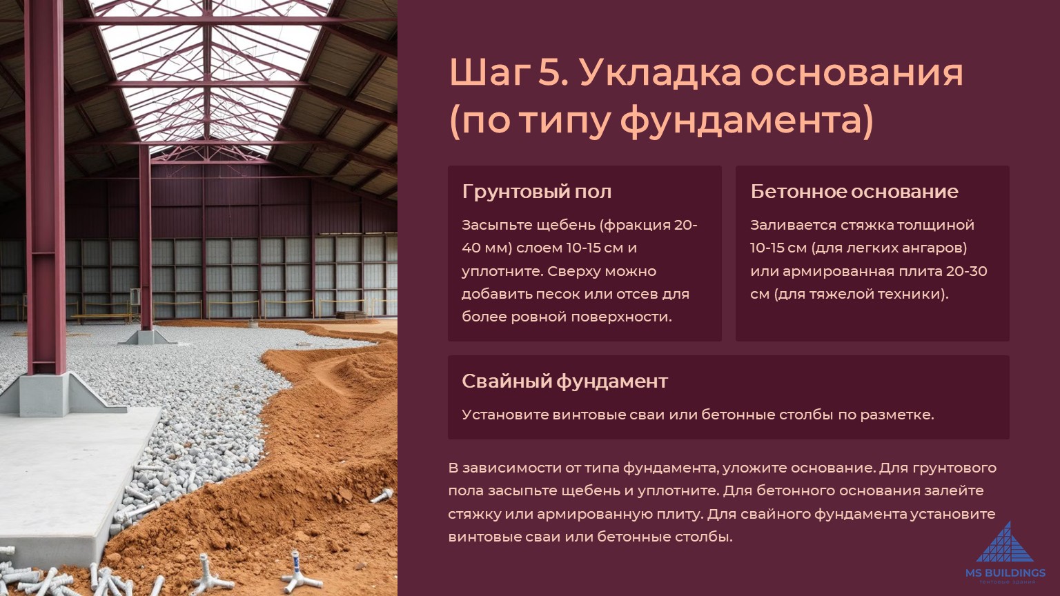 Фундамент для тентового ангара: какой лучше выбрать?