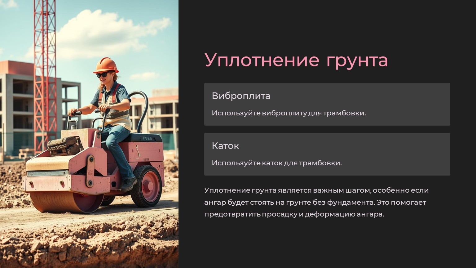 Недостаточное уплотнение – приводит к просадке и деформации ангара.