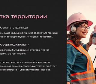 · С помощью колышков и шнура обозначьте границы ангара + зоны для фундамента (если требуется).