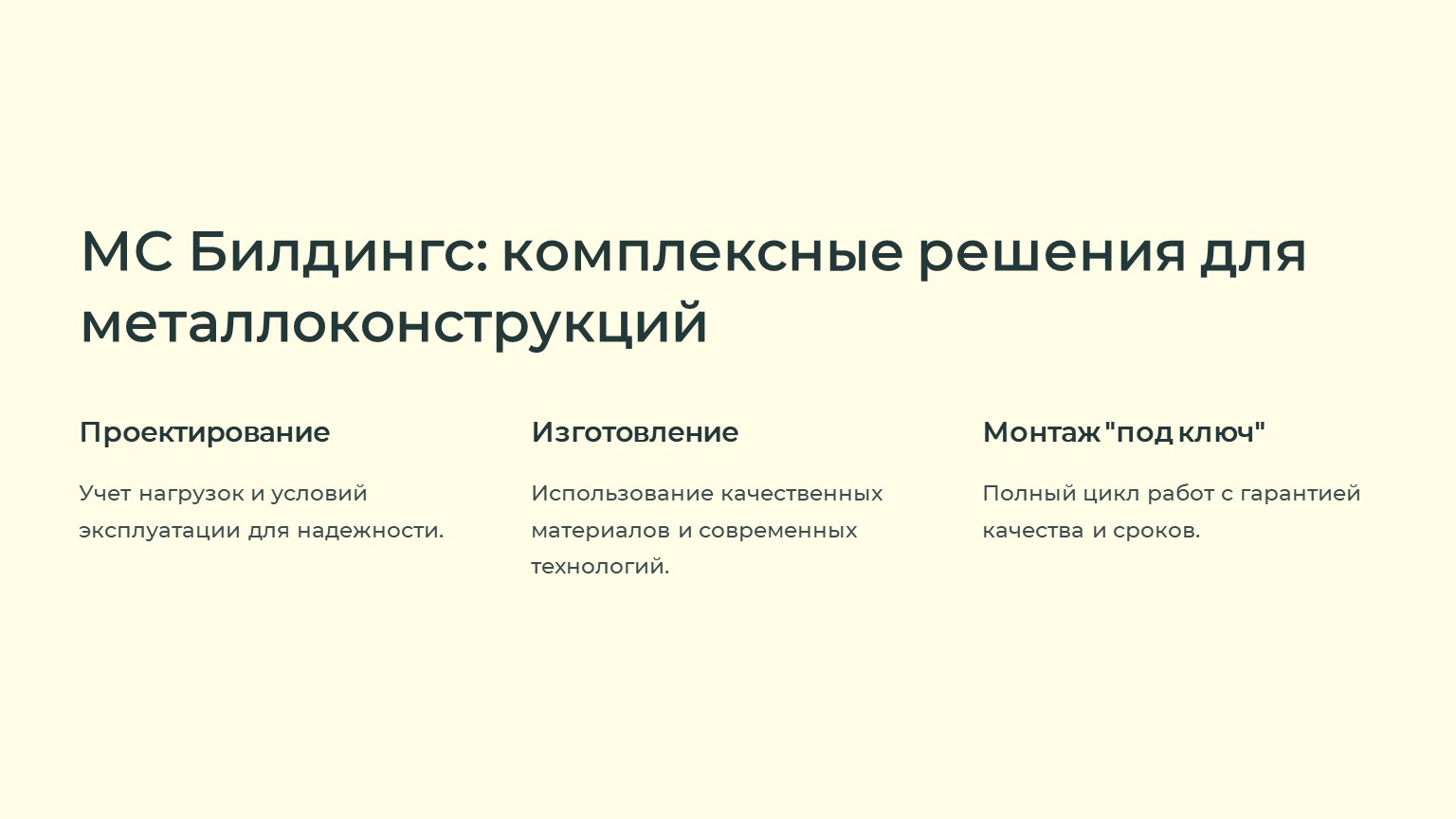 Компания МС Билдингс работает со всеми видами металлоконструкций, предлагая: