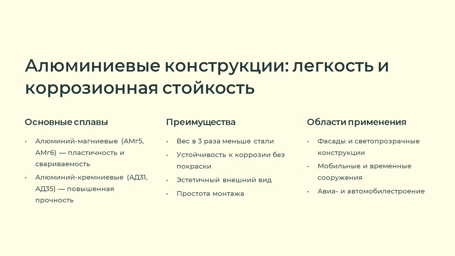 2. Алюминиевые конструкции – легкость и коррозионная стойкость