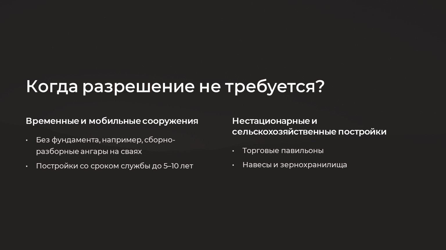 Разрешение не нужно, если здание считается временным или некапитальным. К таким объектам относятся: