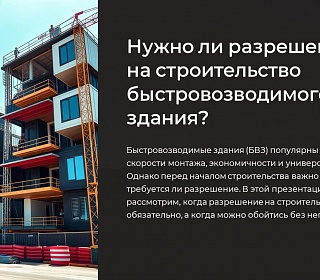Быстровозводимые здания (БВЗ) пользуются популярностью благодаря скорости монтажа, экономичности и универсальности. Однако перед началом строительства важно разобраться, требуется ли разрешительная документация. В этой статье рассмотрим, в каких случаях нужно разрешение на строительство быстровозводимого здания, а когда можно обойтись без него.
