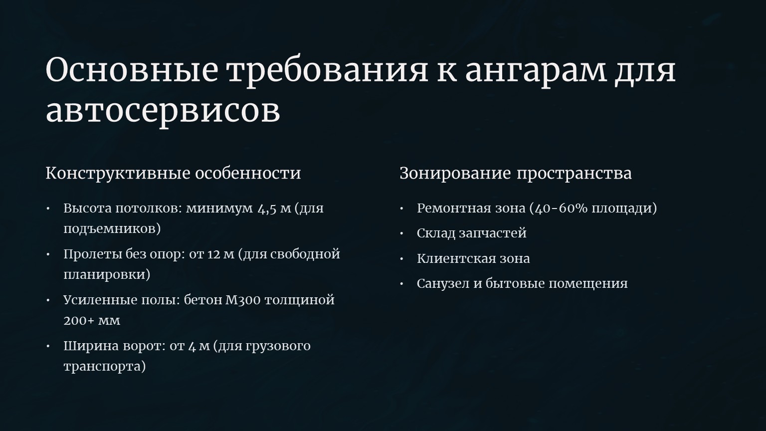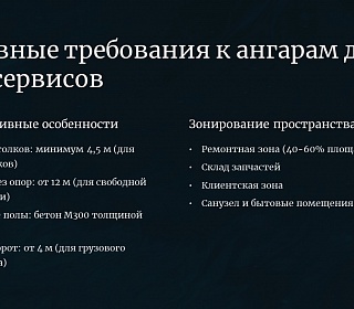 Особенности проектирования ангаров для автомоек и СТО. Нормативные требования, технологические решения и типовые ошибки.