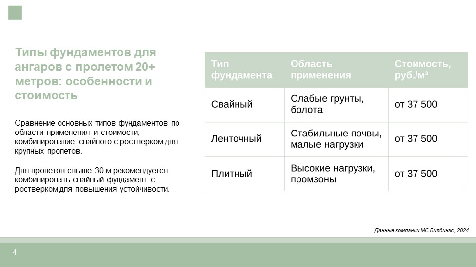 Важно: Для пролетов 30+ метров часто комбинируют сваи с ростверком.
