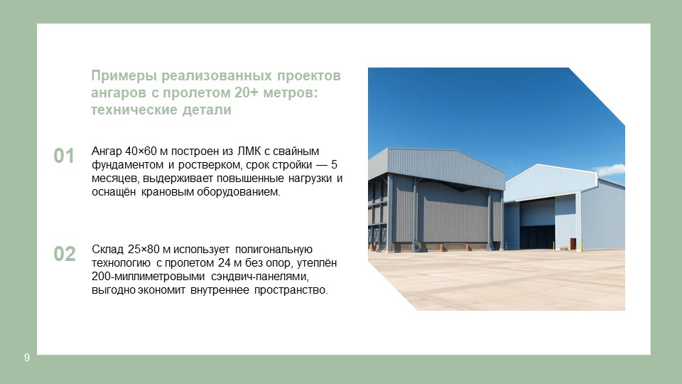 1. Технологии строительства ангаров с пролетом 20+ метров