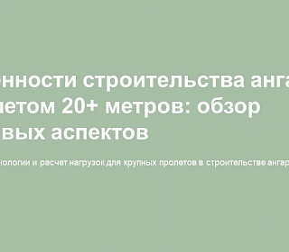 Особенности строительства ангаров с пролетом 20+ метров. Сравнение технологий, расчет нагрузок и стоимость.