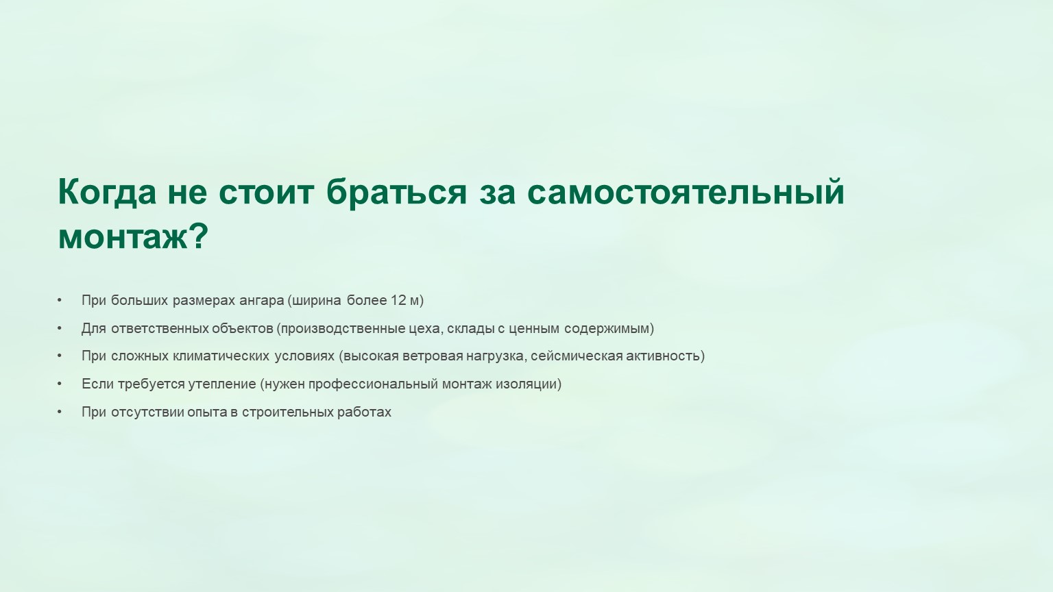 Самостоятельный монтаж арочного ангара возможен, но только при соблюдении условий: