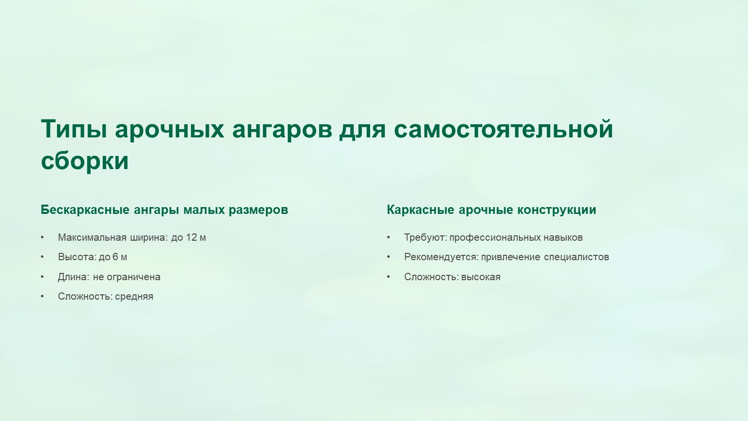 1. Какие типы арочных ангаров можно собрать самостоятельно?