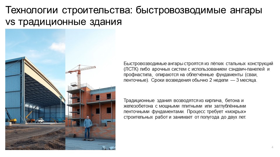 Полное сравнение быстровозводимых ангаров с традиционными зданиями: технологии, стоимость, сроки строительства и рекомендации по выбору.