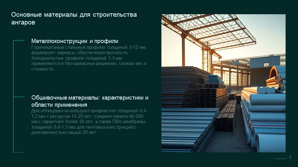 1. Основные материалы для строительства ангаров