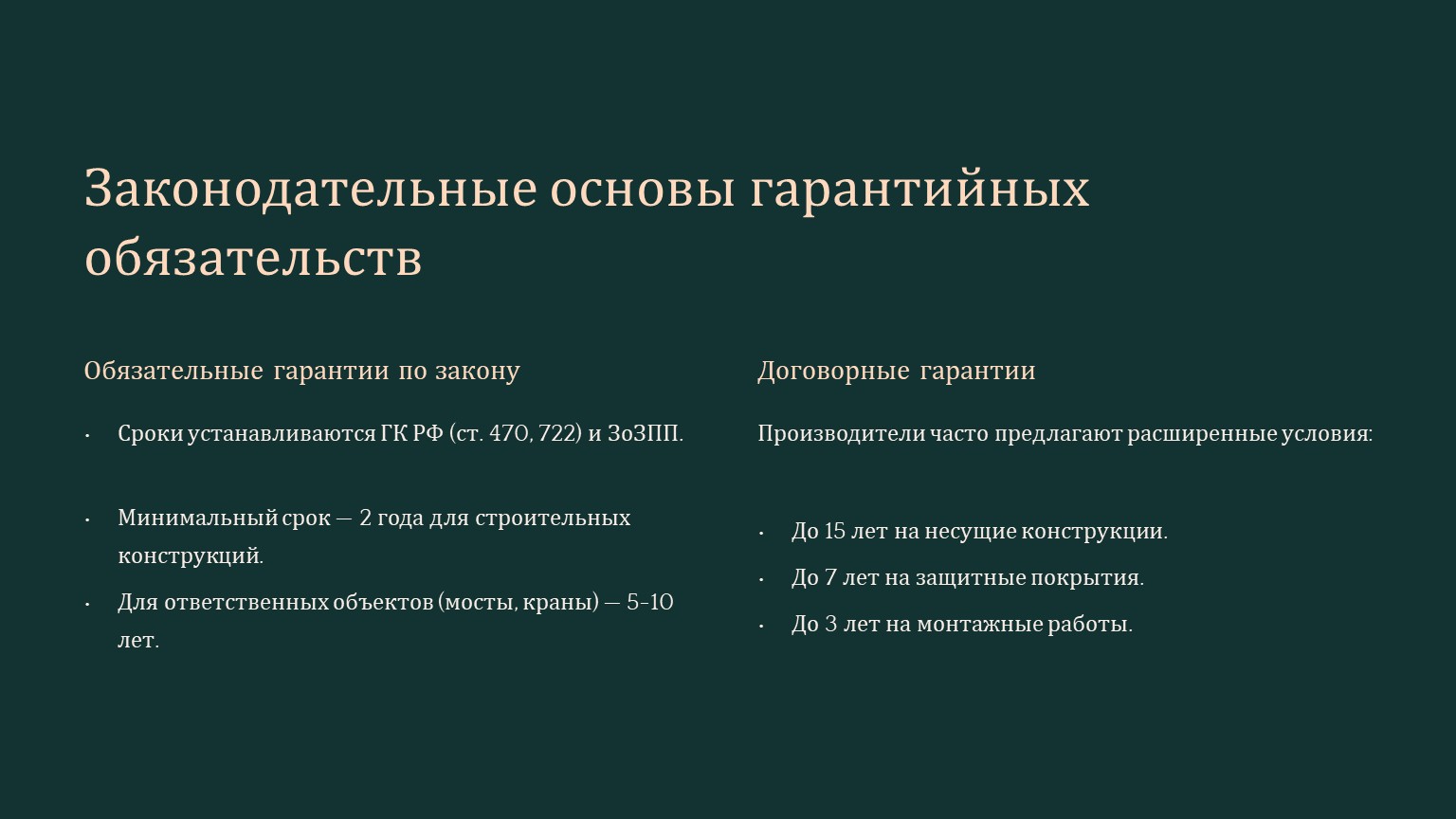Гарантийные обязательства — важнейший аспект договора на изготовление металлоконструкций, который защищает интересы заказчика. Однако 65% потребителей не проверяют условия гарантии, что приводит к проблемам при выявлении дефектов. В этой статье мы разберем ключевые аспекты гарантийных обязательств и дадим практические рекомендации по их оформлению.