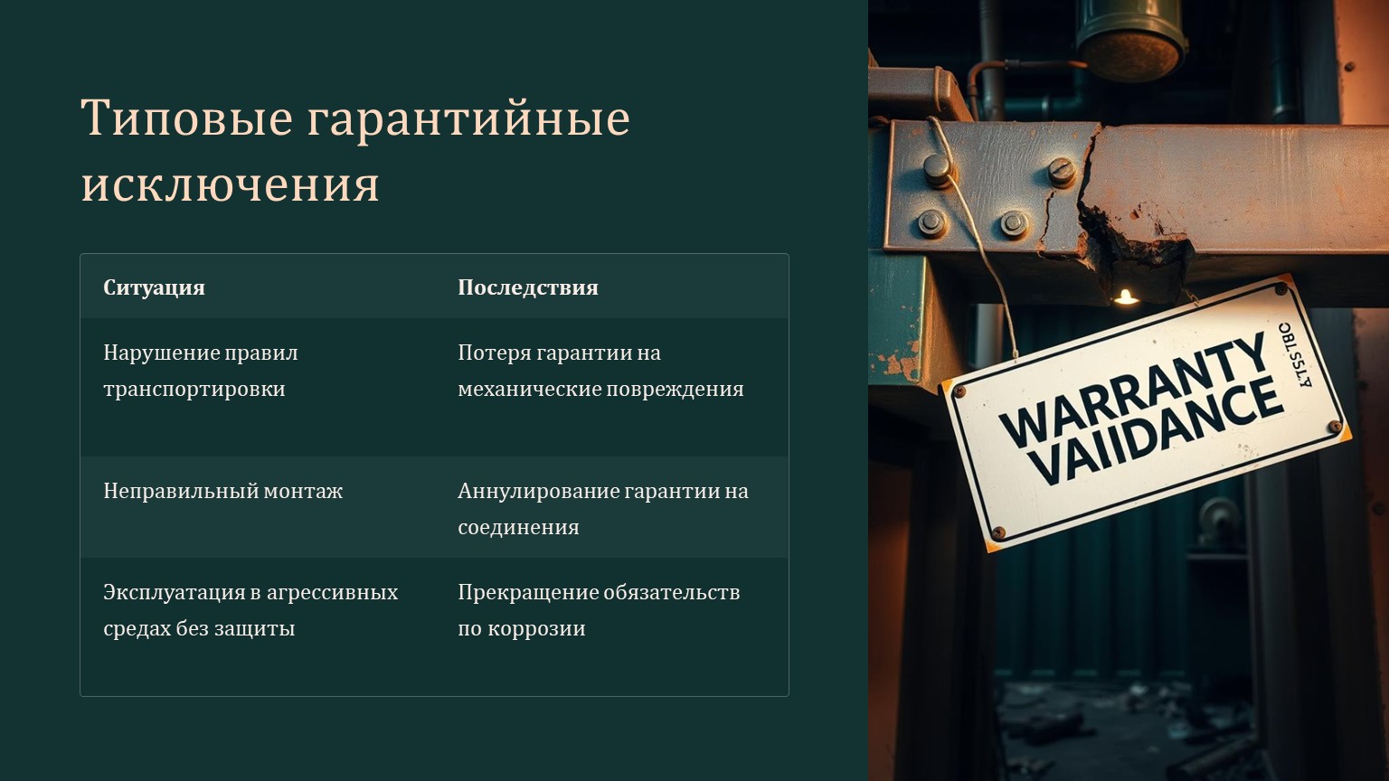 Все о гарантиях на металлоконструкции: сроки, условия, типовые исключения. Узнайте, как проверить гарантийные обязательства перед подписанием договора.