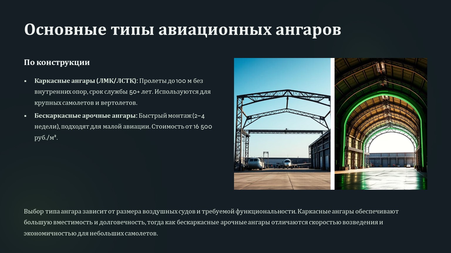Все об авиационных ангарах: типы, этапы проектирования, технологии строительства и цены. Современные решения для хранения и обслуживания воздушных судов.