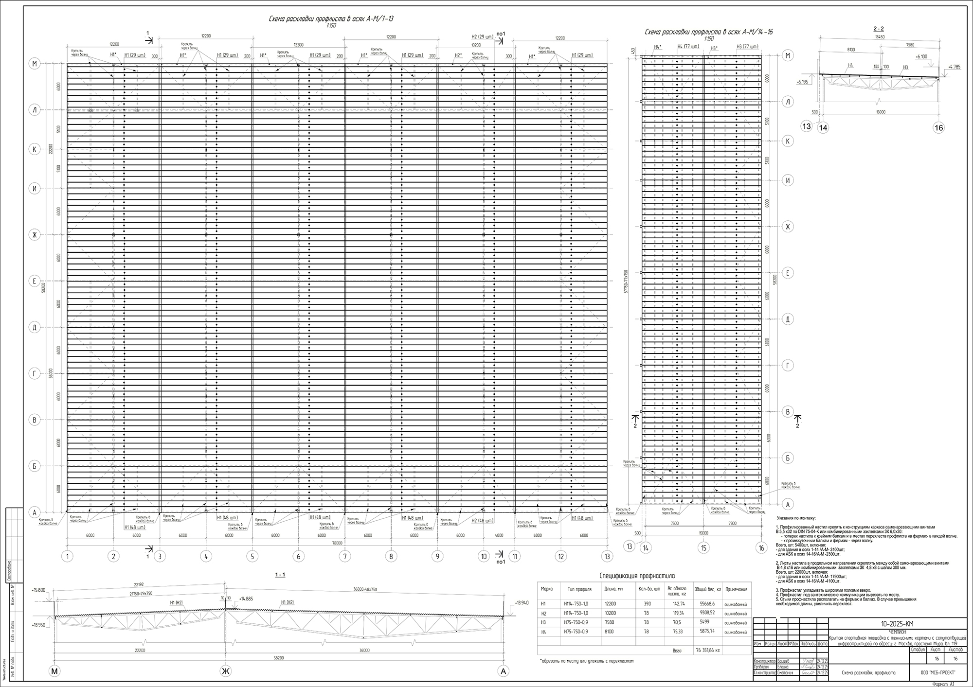 · Кровля — мембранная система по профлисту с утеплением 150 мм (пароизоляция → утеплитель → гидроизоляция), уложенная с соблюдением технологии герметичности, плотности и вентиляции