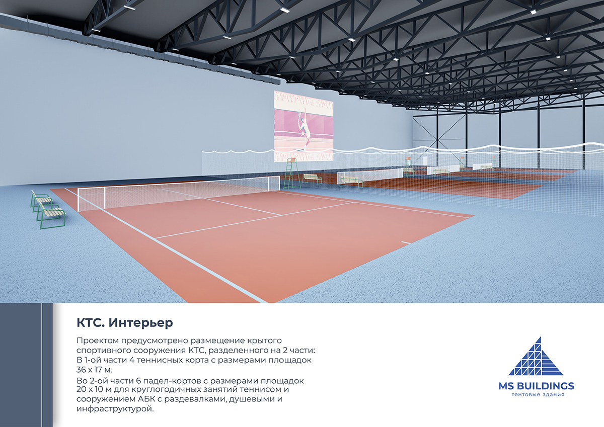МС БИЛДИНГС завершил проектирование теннисного центра в Москве 4 корта большого тенниса и 6 падел-корта под одной крышей