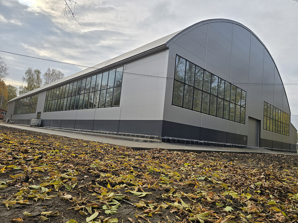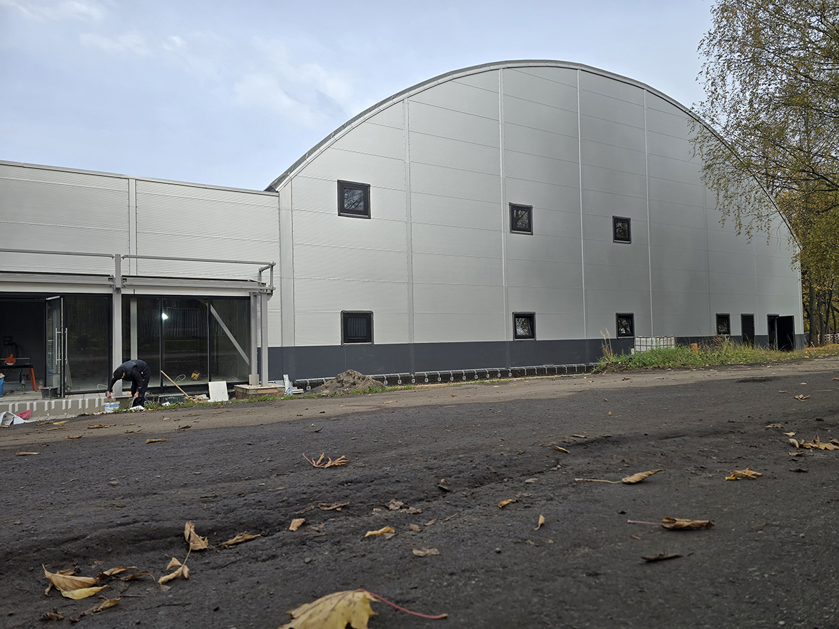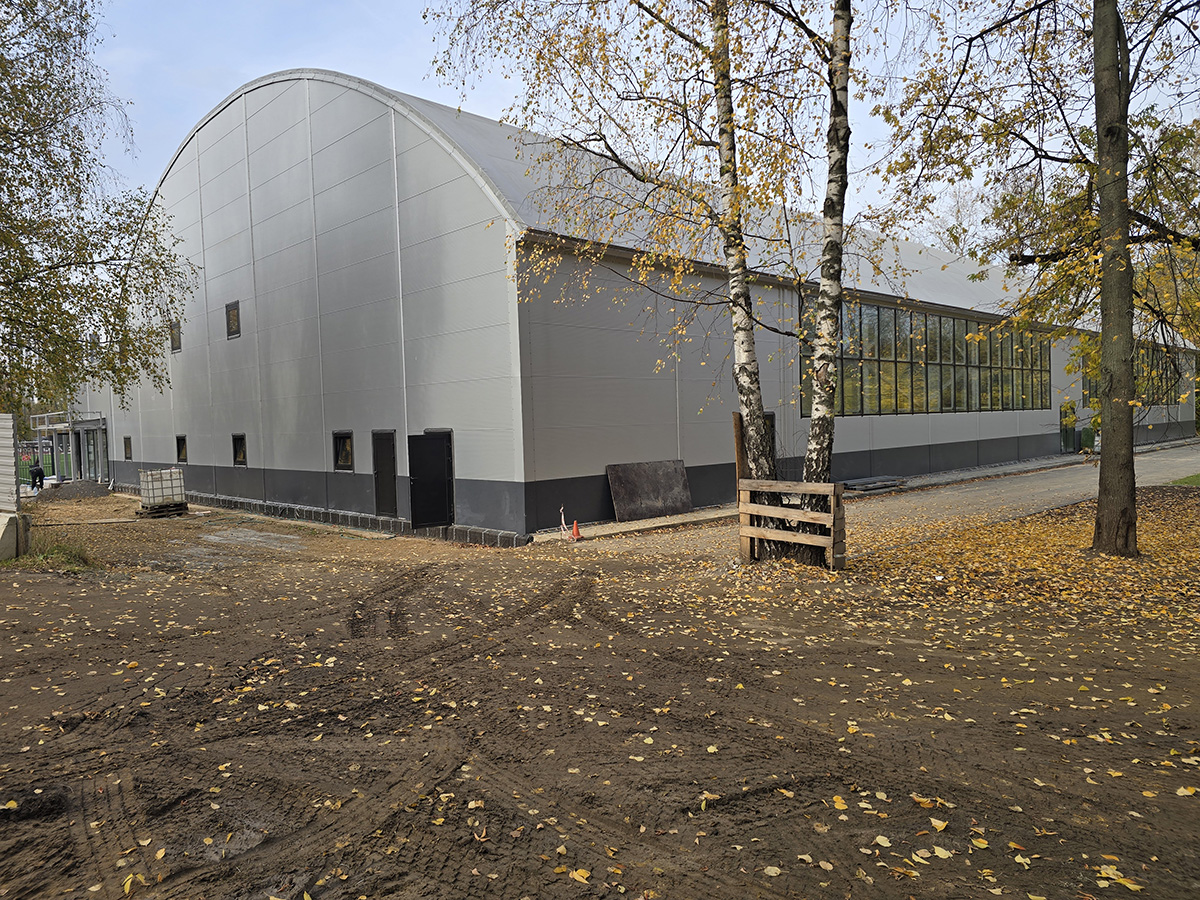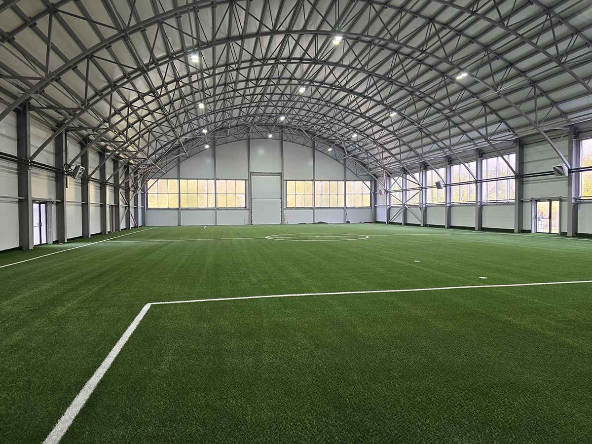 1. Основное игровое пространство (58×28 м) с футбольным полем и уникальной кровлей из «гибкого сэндвича» с базальтовым утеплителем 150 мм.