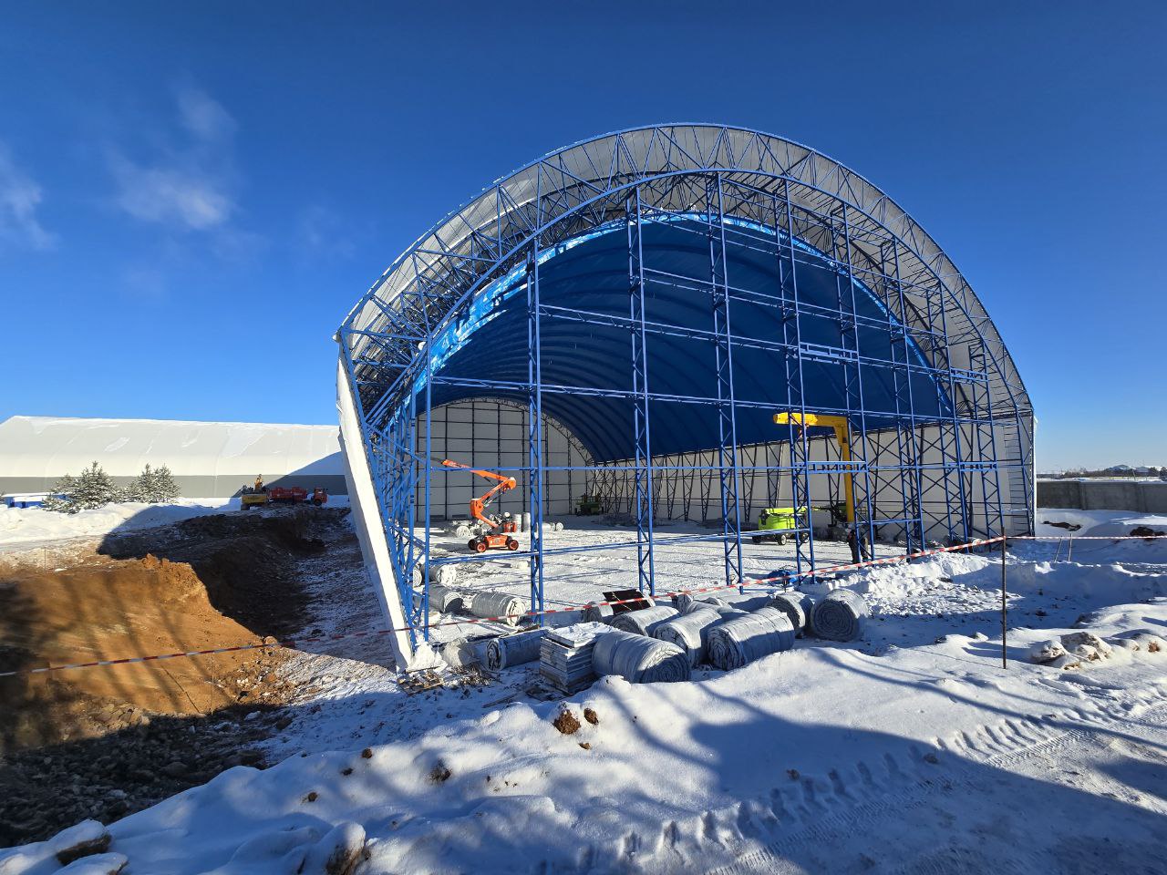 Монтаж каркаса, тентовой оболочки и инженерных систем «под ключ»: 48 дней