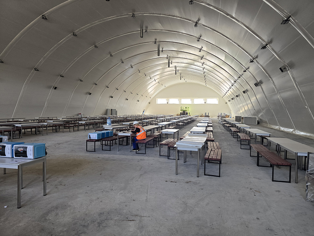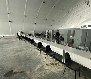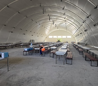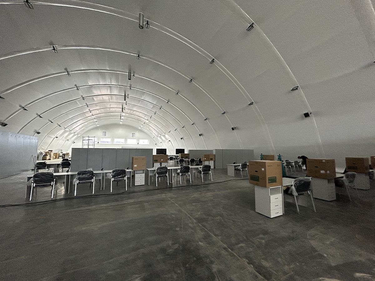 · Энергоэффективность: Специальная трехслойная тентовая система с воздушной прослойкой и утеплителем из полиэфирного волокна толщиной 100 мм позволяет поддерживать комфортную температуру внутри помещений как зимой, так и летом, снижая затраты на отопление и кондиционирование.