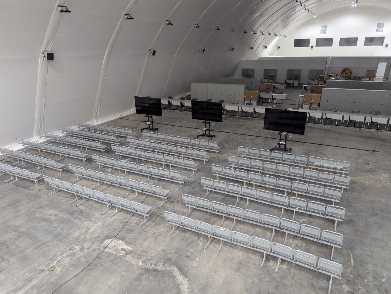 Комплексы размером 30х80 м предназначены для организации пунктов регистрации, столовых и складских помещений, демонстрируя гибкость современных строительных решений.