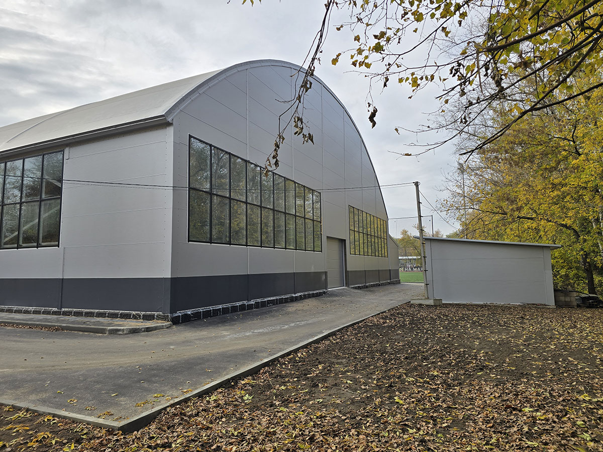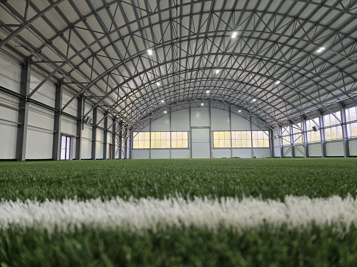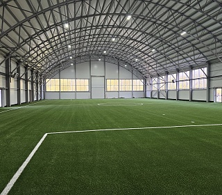 Полный цикл работ «под ключ»: от проектирования и производства до монтажа и оснащения инженерными системами. Реализован современный спортивный комплекс с основным манежем и развитой инфраструктурой для комфортных тренировок футболистов круглый год.