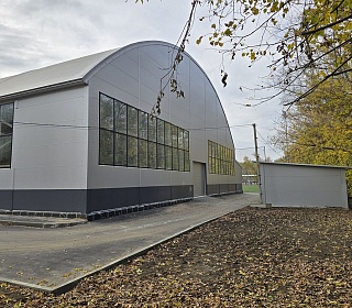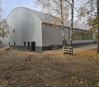 При строительстве манежа были применены трёхслойные тентовые панели собственного производства с базальтовым утеплителем 150 мм, что обеспечило: