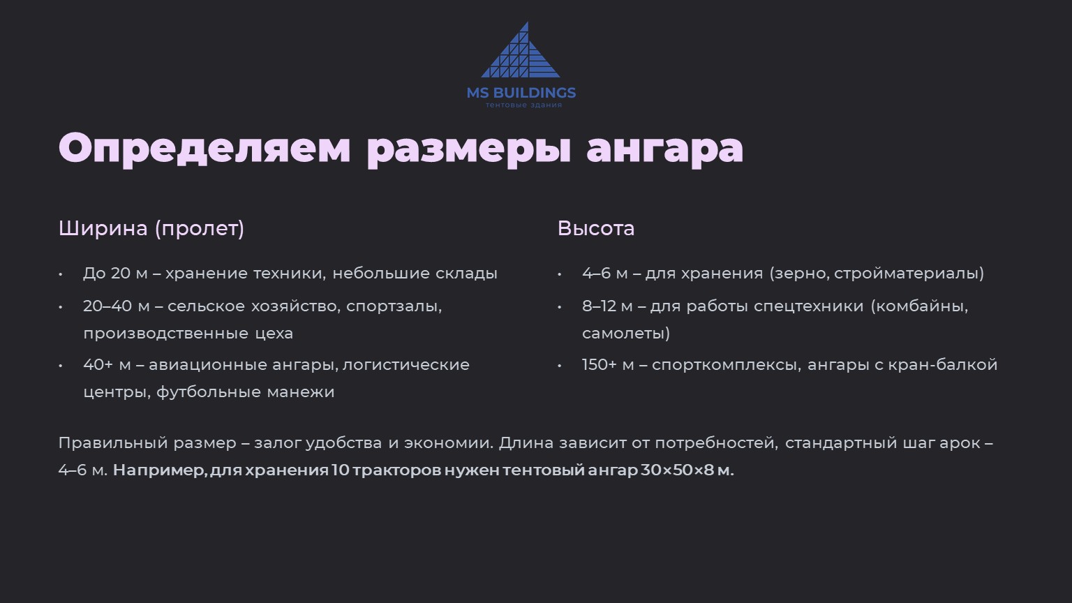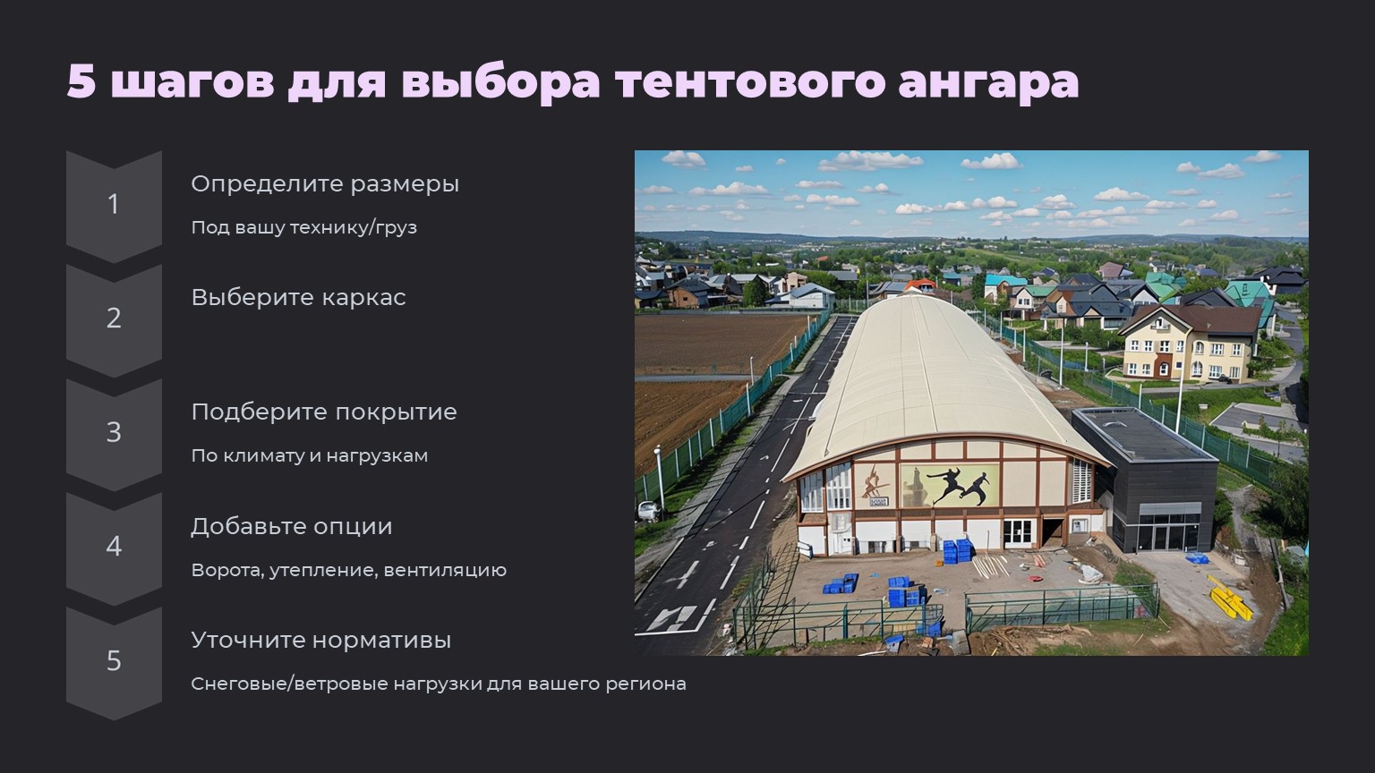 Как выбрать тентовый ангар? Размеры, каркас, покрытие – гайд по подбору конструкции.
