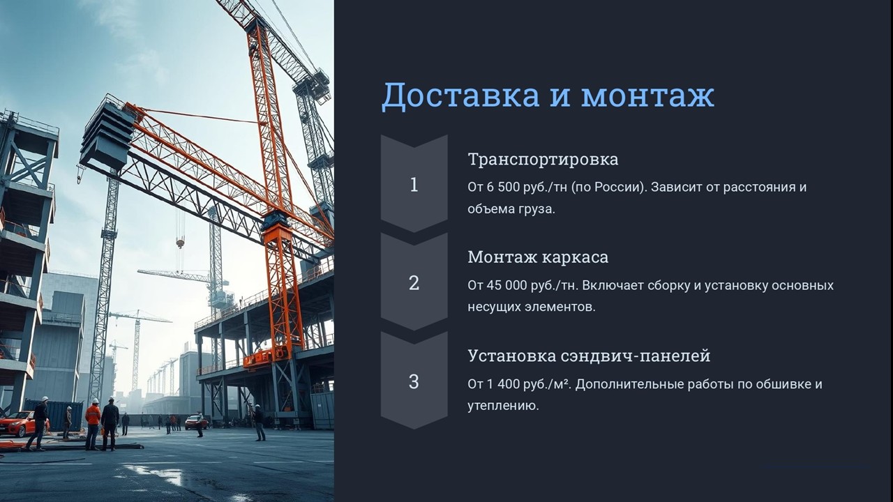 ✔ Монтаж каркаса – от 45 000 руб./тн