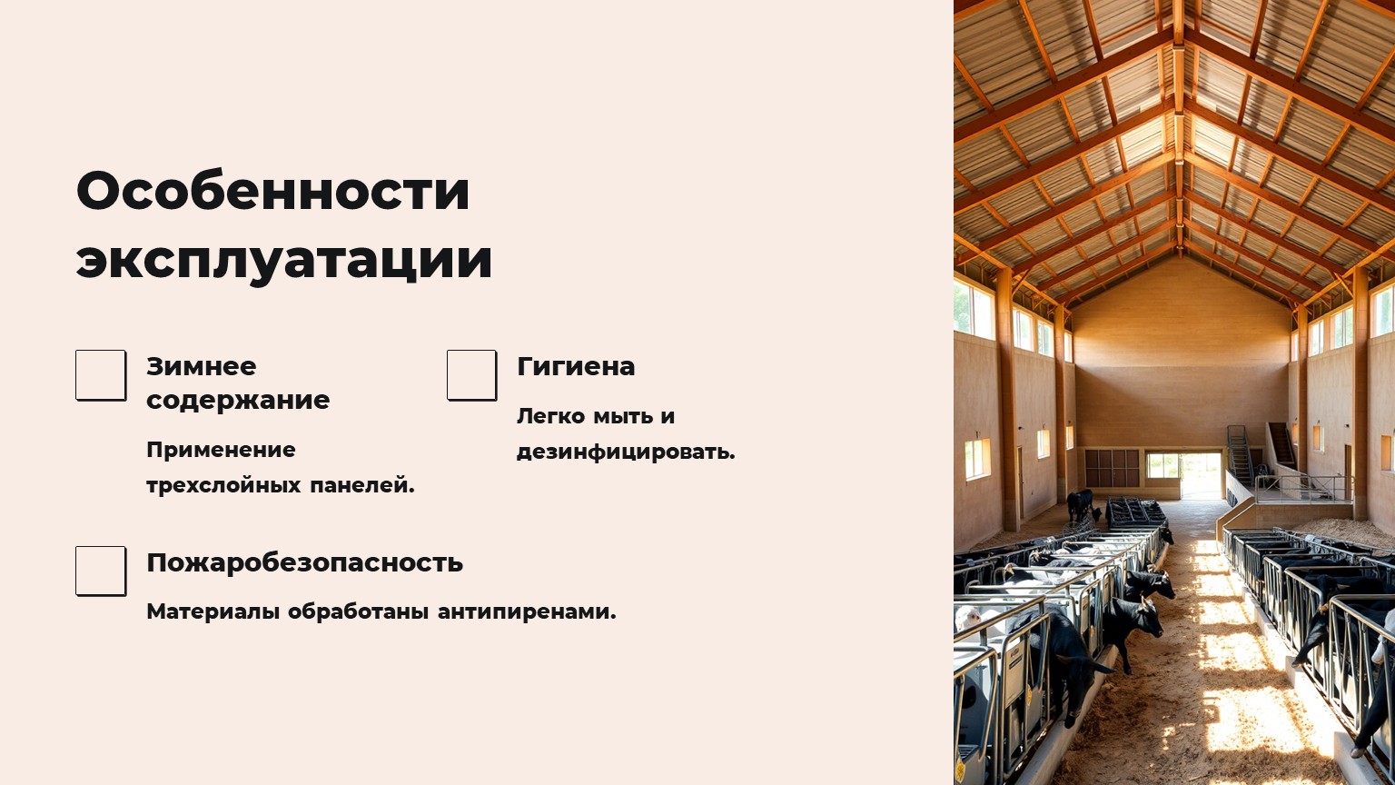 · Разделение на секции для разных групп животных (телята, дойные коровы, быки).