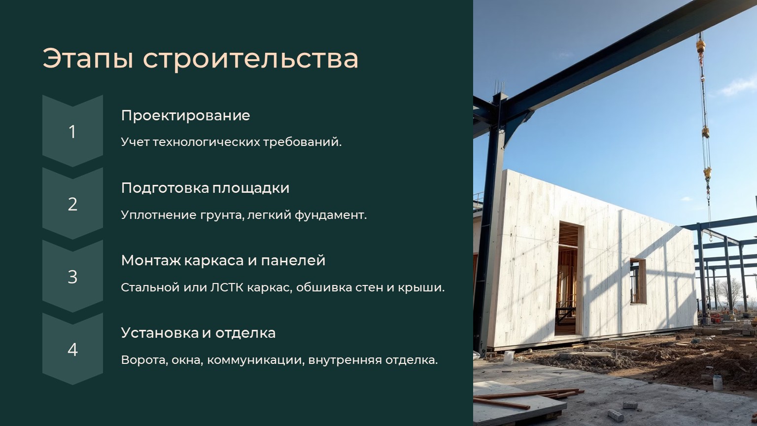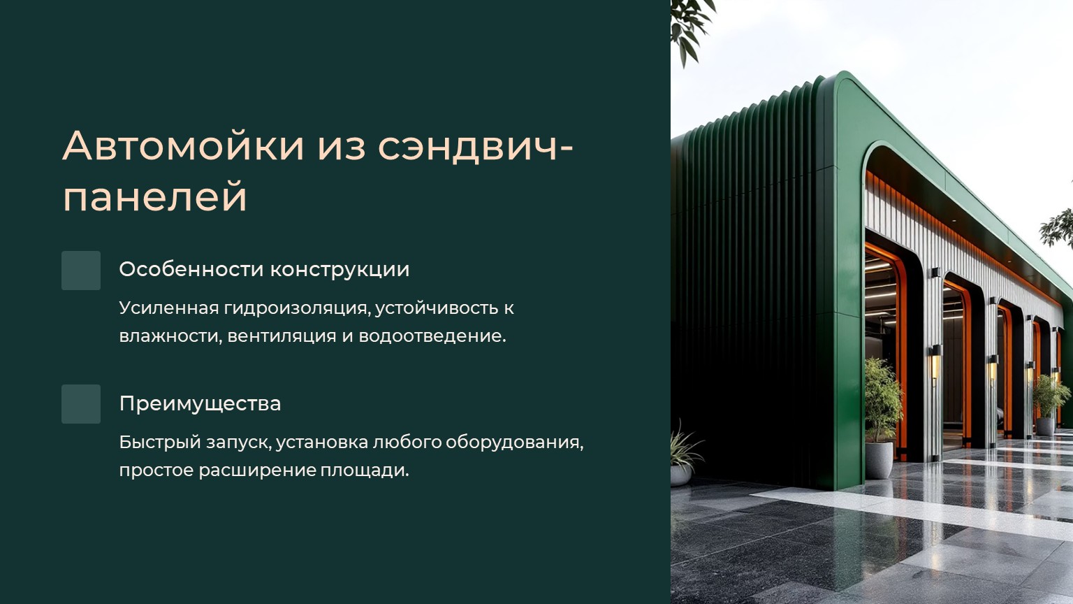 Строительство автомоек, СТО и сельхозпостроек из сэндвич-панелей – это smart-решение для предпринимателей. Оно позволяет быстро начать бизнес с минимальными вложениями и получить качественное, долговечное помещение.