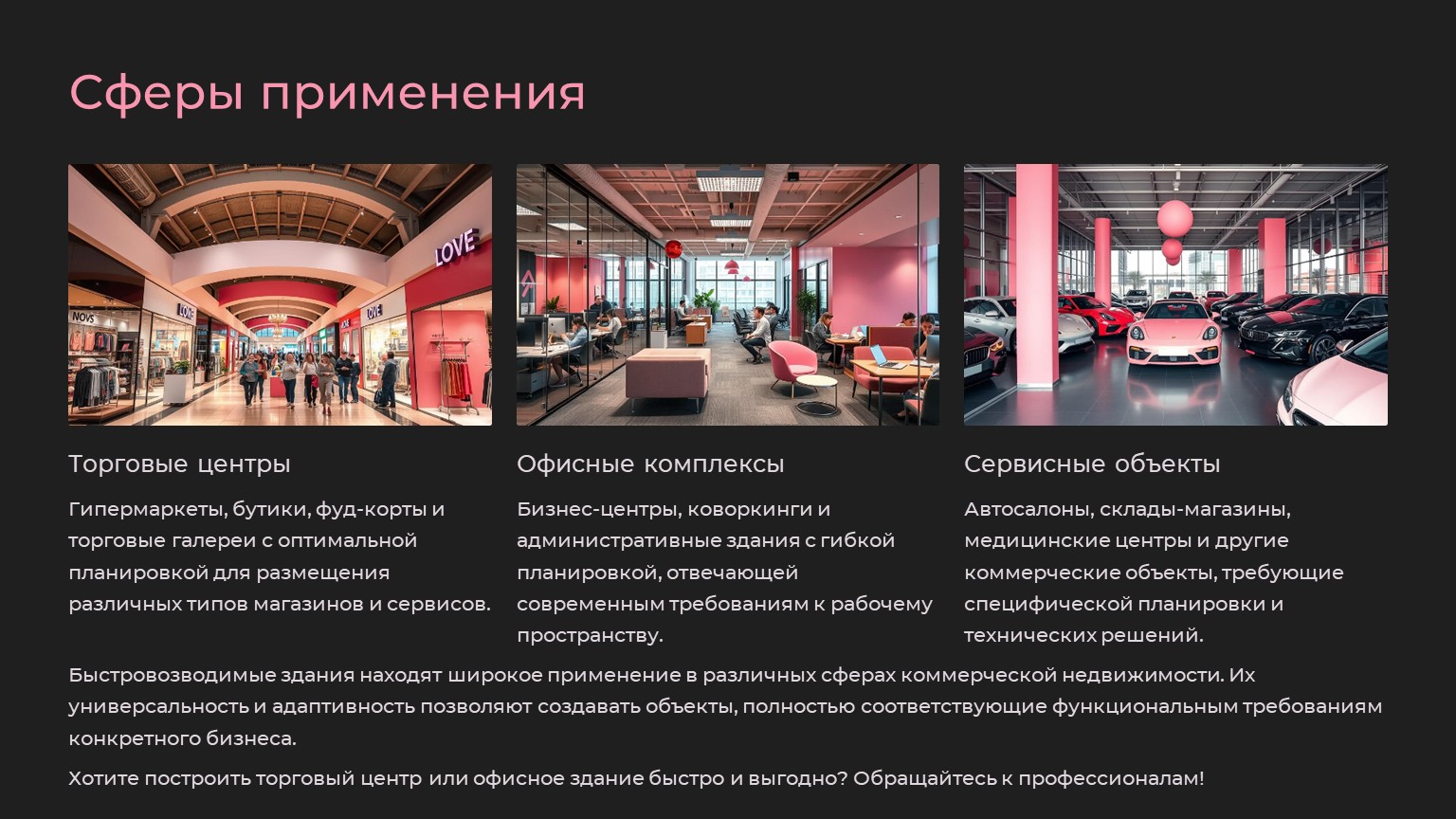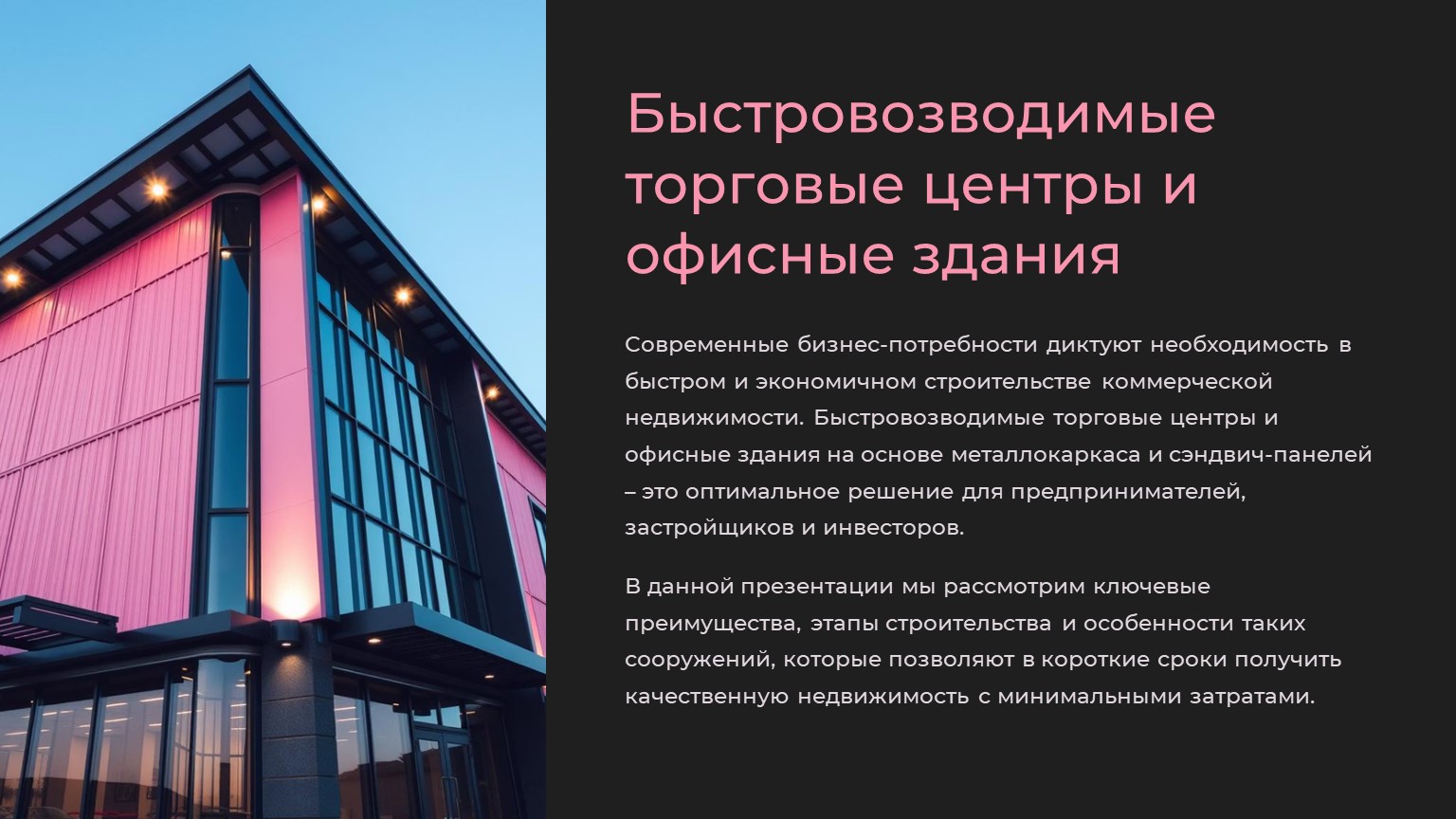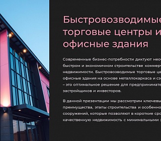 Быстровозводимые торговые центры и офисные здания – это современное, экономичное и практичное решение для бизнеса. Они позволяют в короткие сроки получить качественную недвижимость с минимальными затратами.