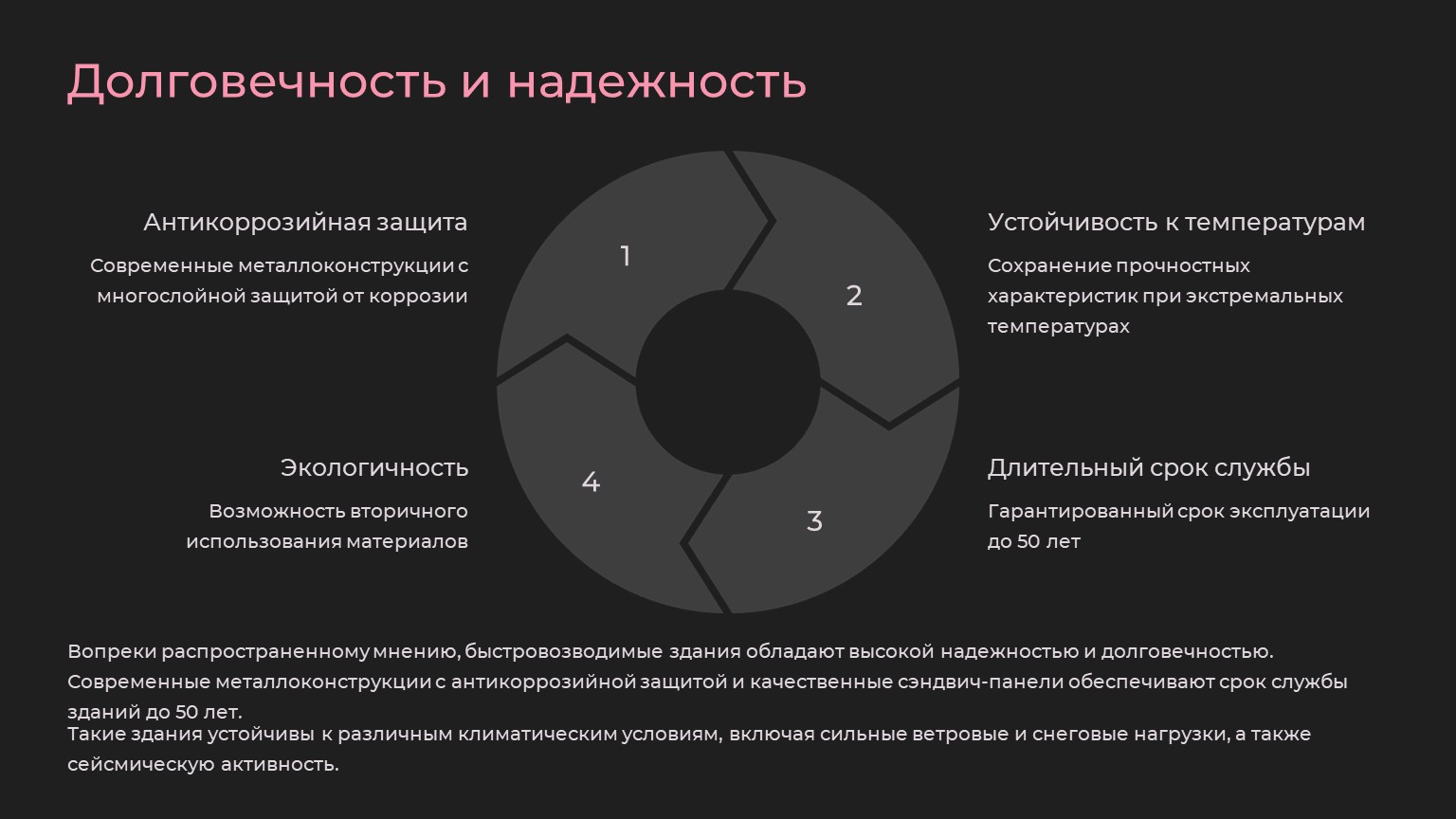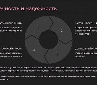 Современные металлоконструкции с антикоррозийной защитой и качественные сэндвич-панели обеспечивают срок службы зданий до 50 лет.