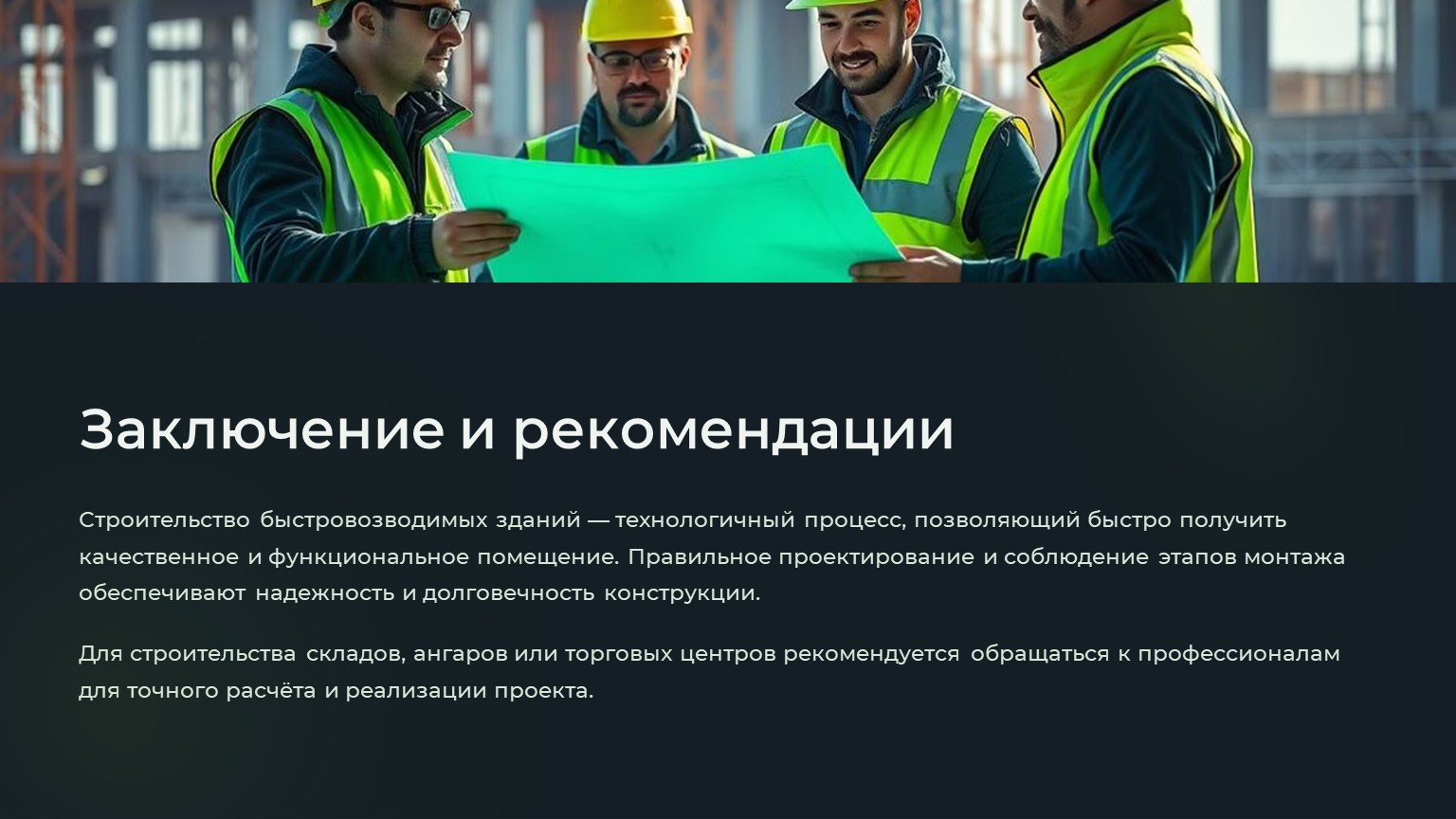 Строительство быстровозводимых зданий — это технологичный процесс, который позволяет быстро получить качественное и функциональное помещение. Правильное проектирование и соблюдение этапов монтажа — залог надёжности и долговечности конструкции.