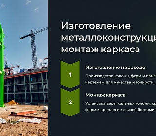 Основные элементы (колонны, фермы, стеновые панели) производятся на заводе по готовым чертежам. Это гарантирует точность размеров и качество материалов.