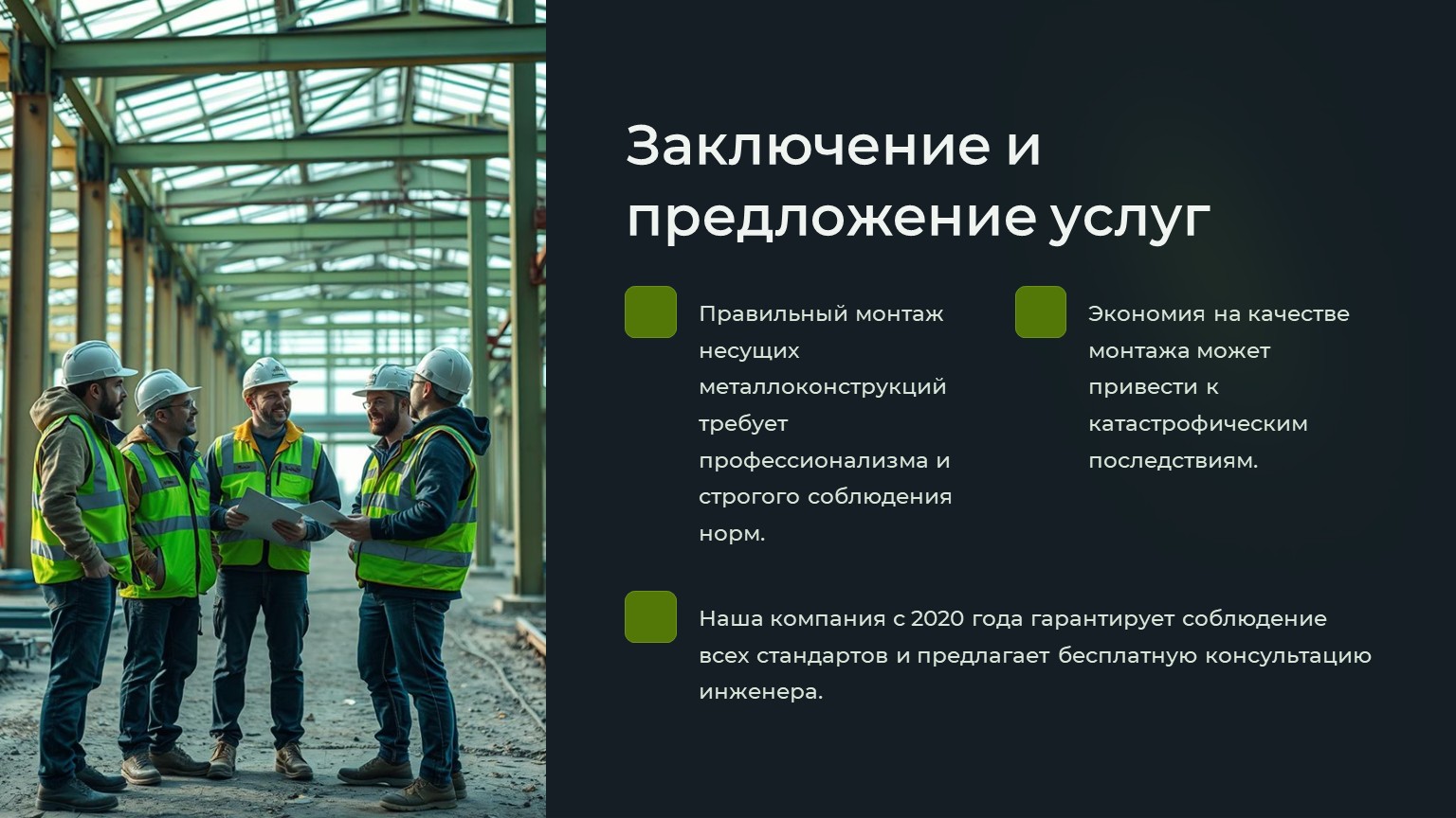 Нужен профессиональный монтаж несущих конструкций? Наша компания с 2020 года специализируется на промышленном строительстве и гарантирует соблюдение всех норм и стандартов. Получите бесплатную консультацию нашего инженера!