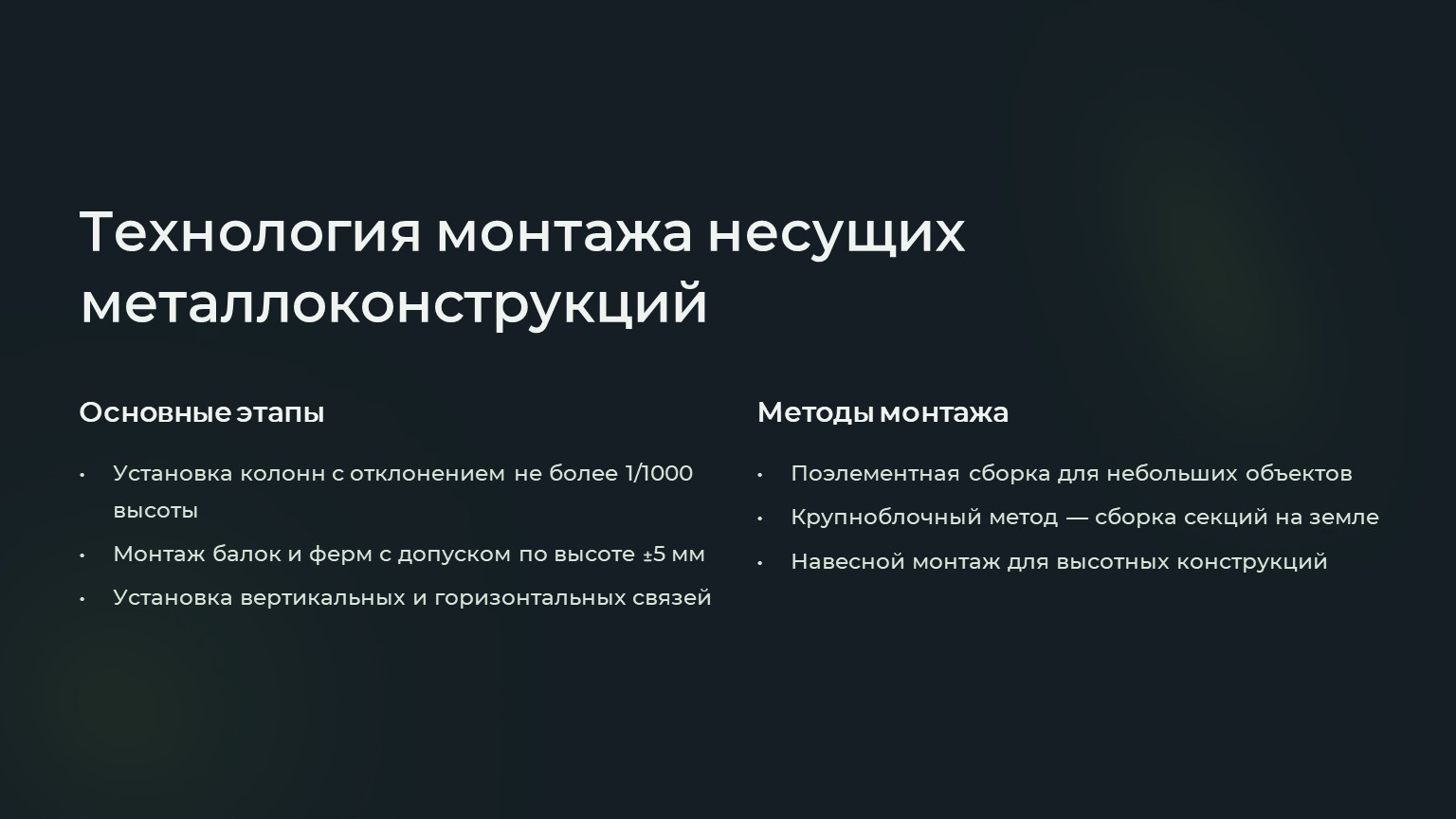 3. Технология монтажа несущих металлоконструкций
