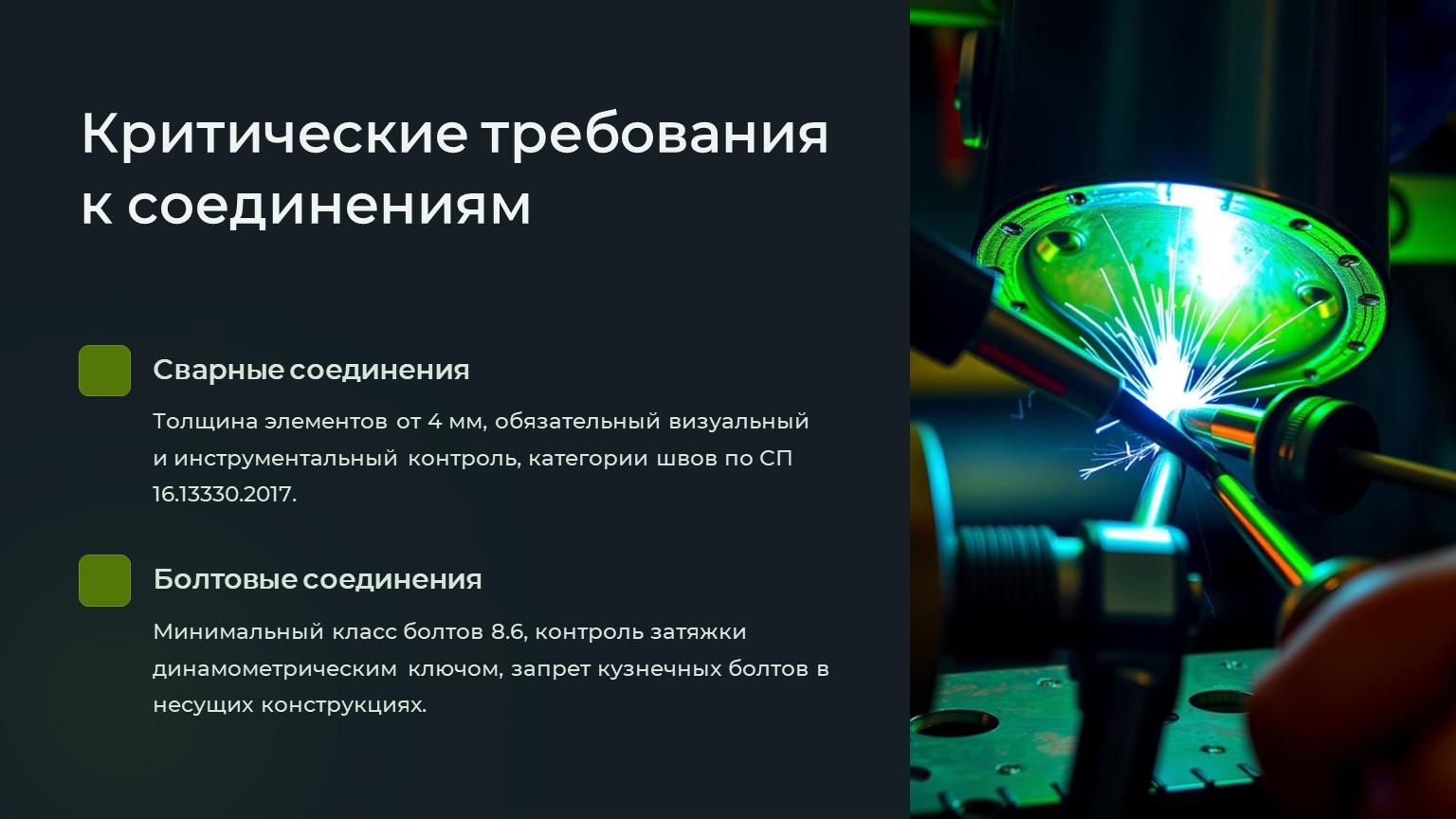 o Требования к сварным соединениям (по СП 16.13330.2017)