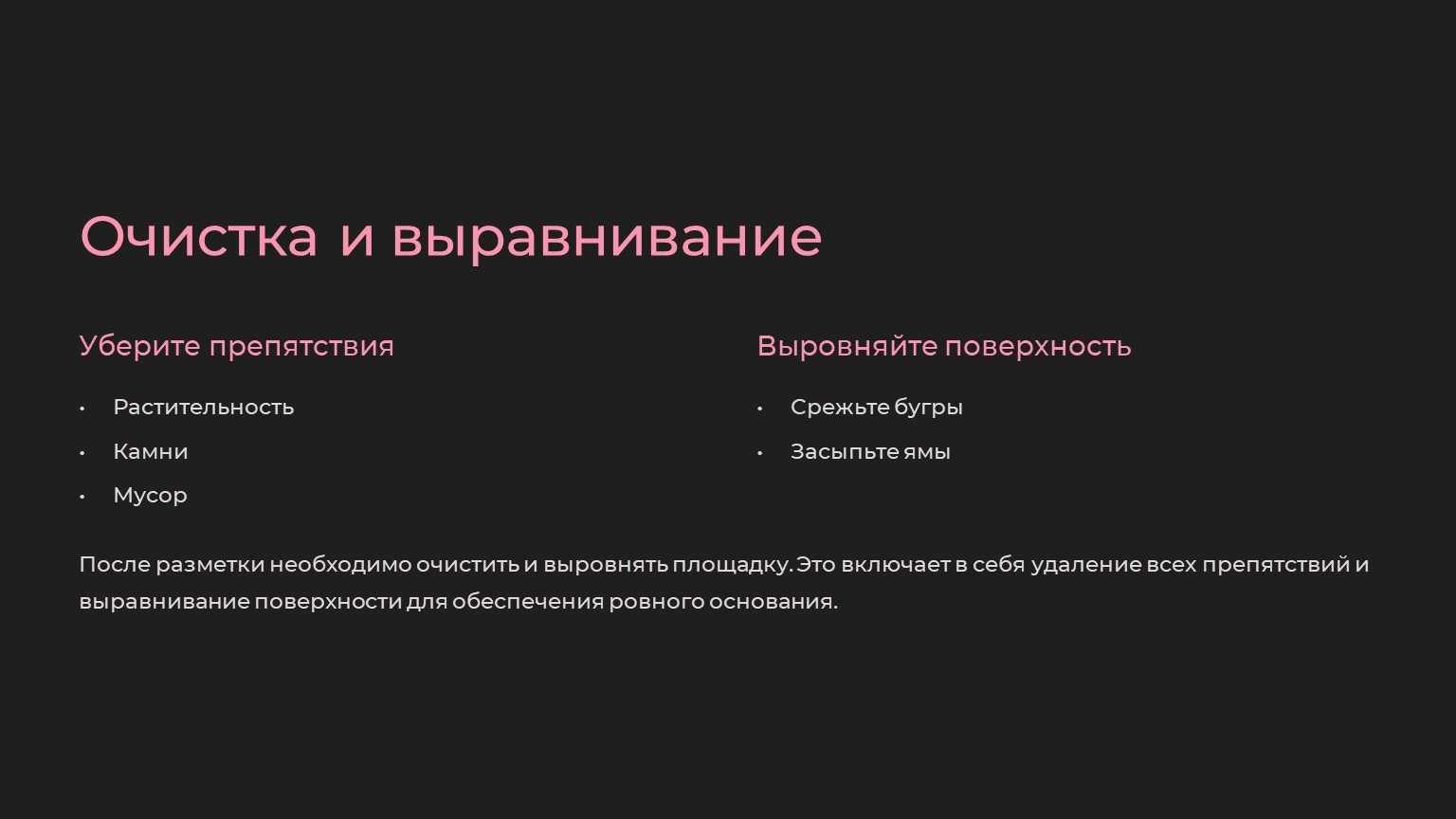 · Если участок склонен к подтоплению, сделайте уклон (1-2%) и дренажные канавы по периметру.