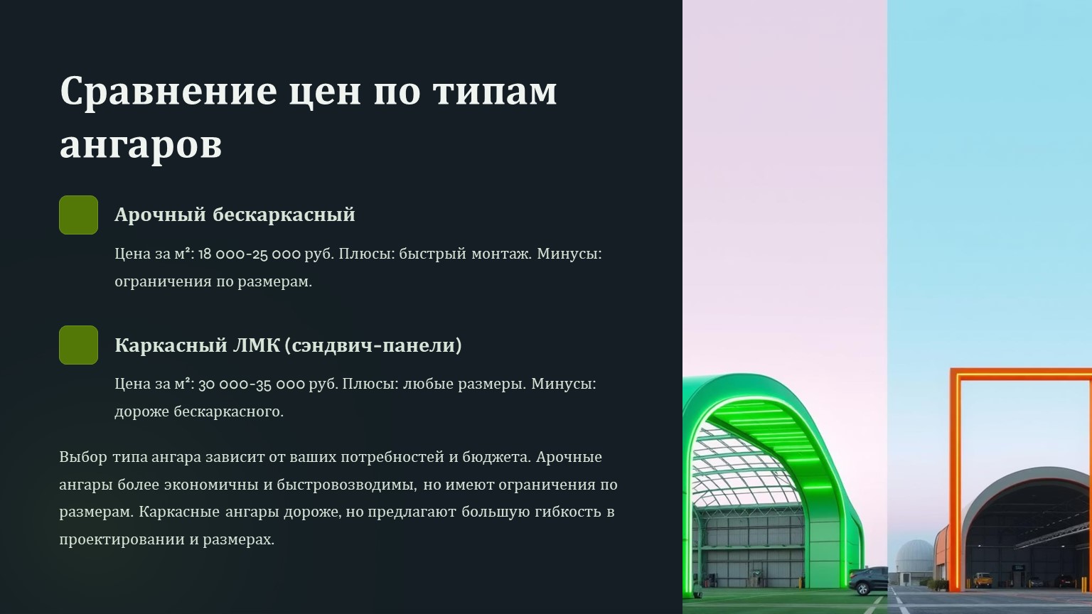 3. Сравнение цен по типам ангаров
