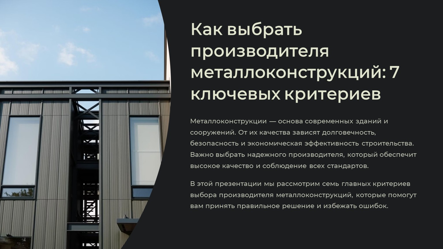 Металлоконструкции – основа современных зданий и сооружений. От их качества зависит долговечность, безопасность и экономическая эффективность строительства. Но как выбрать надежного производителя? В этой статье мы разберем 7 главных критериев, которые помогут вам принять правильное решение.