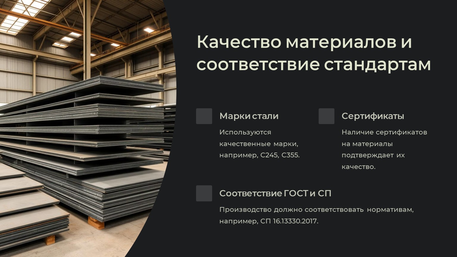✔ Соответствует ли производство СП 16.13330.2017 и другим нормативам?