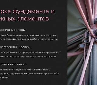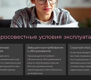 · обязательное обслуживание 2 раза в год (проверка тросов, болтов, натяжки тента).