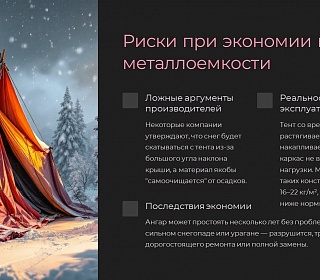 Ошибка многих покупателей — выбор ангара только по цене, без учета металлоемкости и расчетных нагрузок.